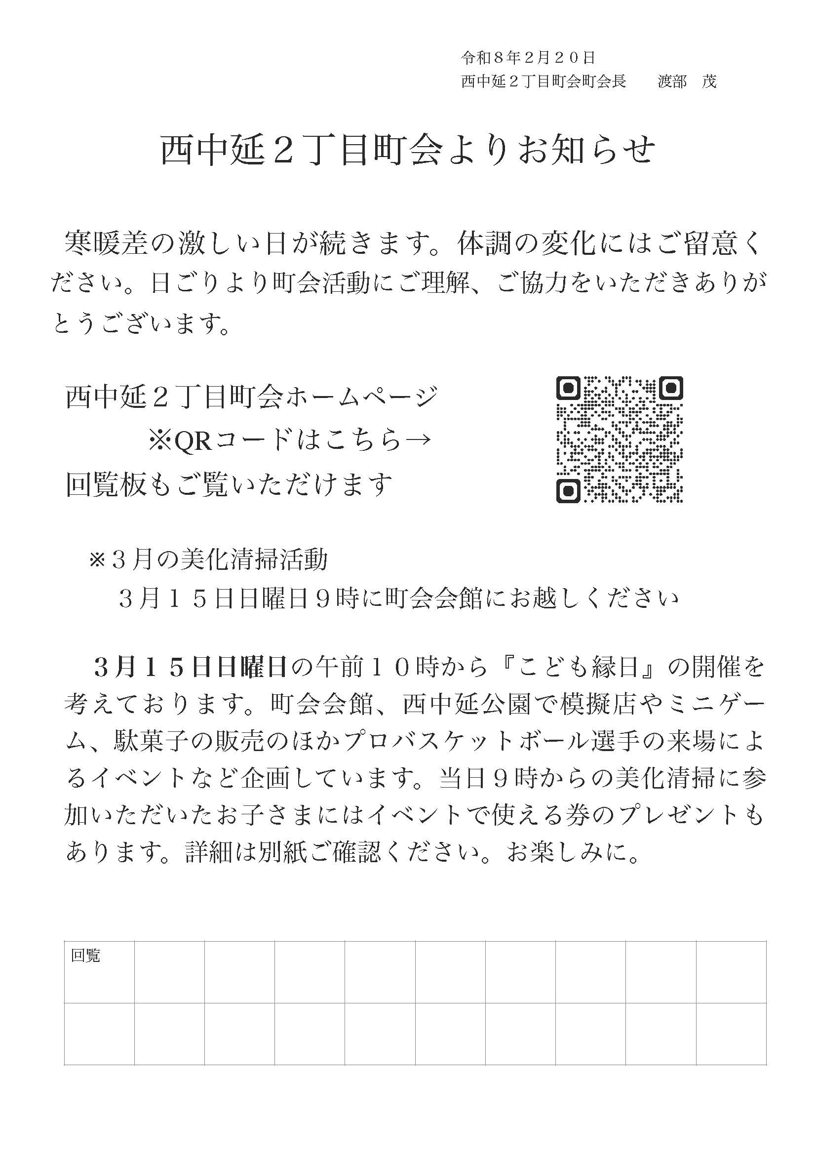 西中延2丁目町会のおしらせ0220